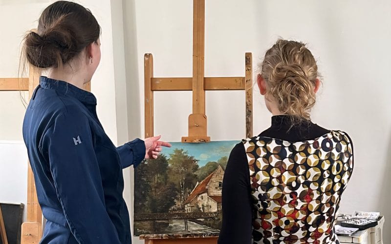 In uitzonderlijke gevallen – bijvoorbeeld bij extreem grote werken of wanneer een schilderij niet van zijn plek af kan, kunnen we op locatie werken, maar dit is echt maatwerk.